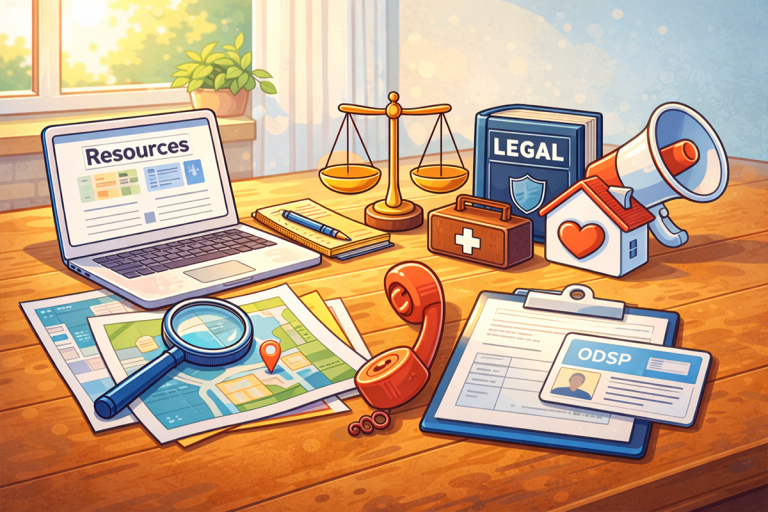 This page gathers reliable starting points so you can find support faster — whether you’re looking for your local ODSP/OW office, legal help, advocacy support, or community services.